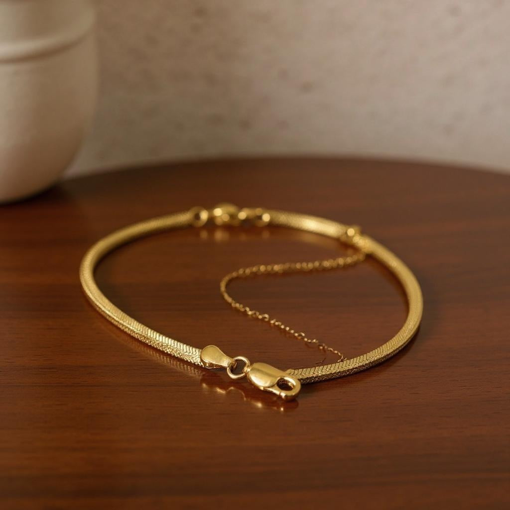 Elevate your everyday elegance with this Designer Herringbone Bracelet crafted from 10K solid yellow gold. Measuring 7 inches in length, this timeless piece features a sleek, flat-lay design that sits comfortably on the wrist while catching the light with every move.
