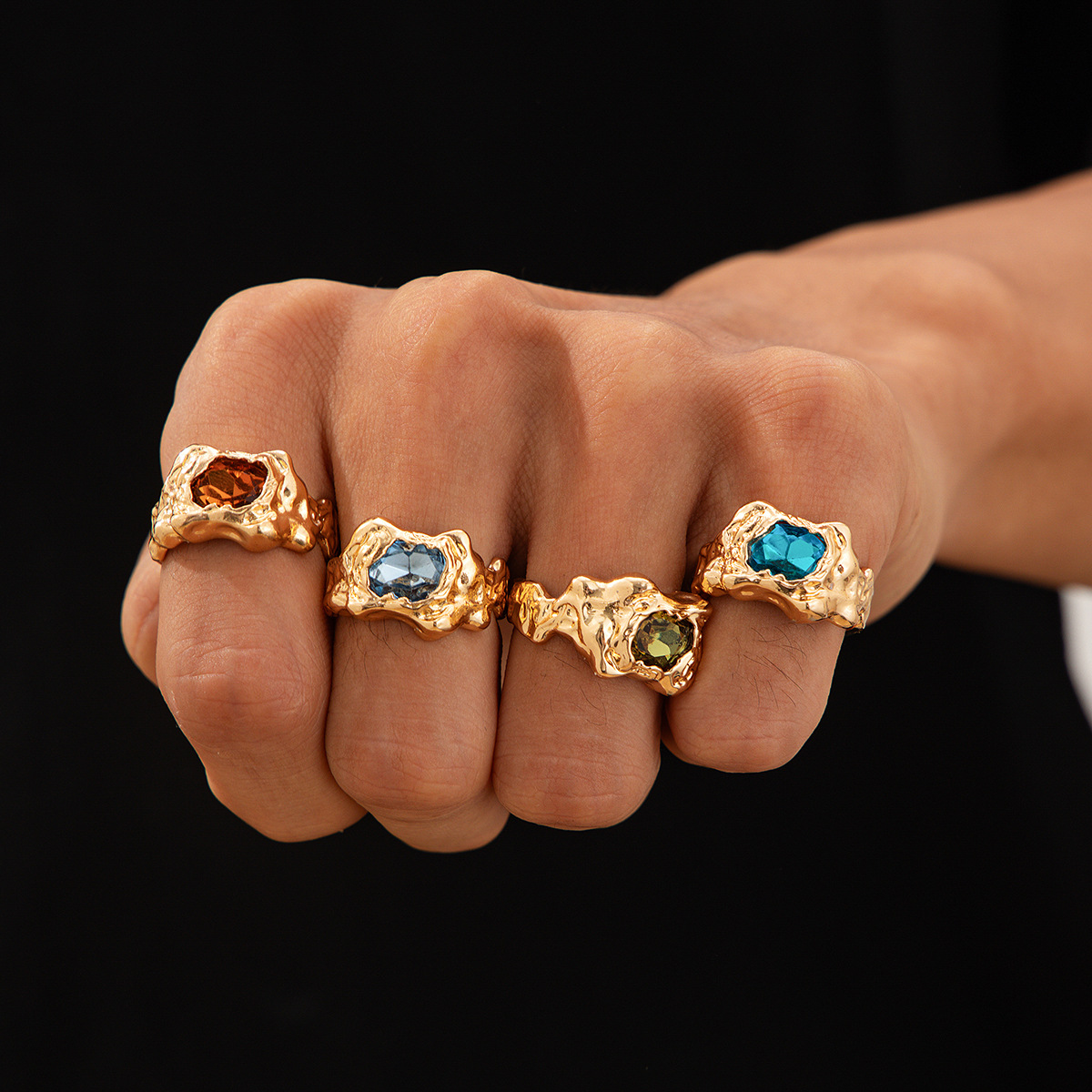European And American Fashion Cool Pleated Lava Metal Gemstone Ring For Men